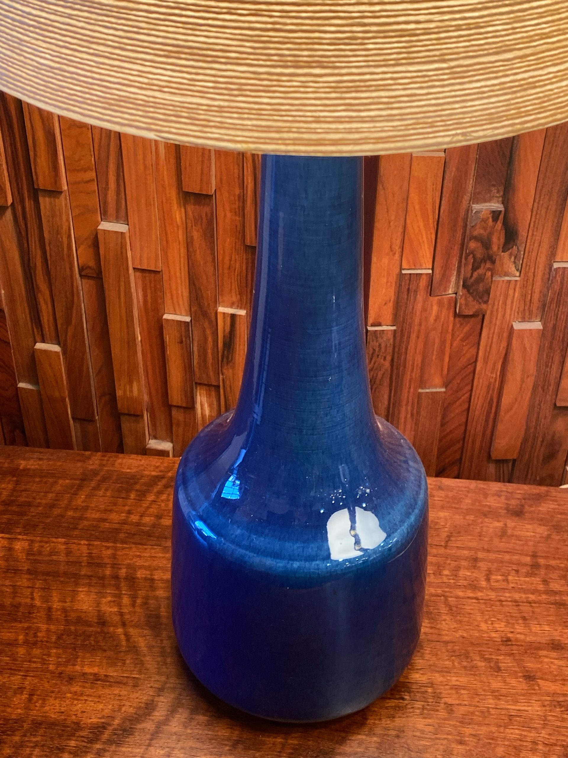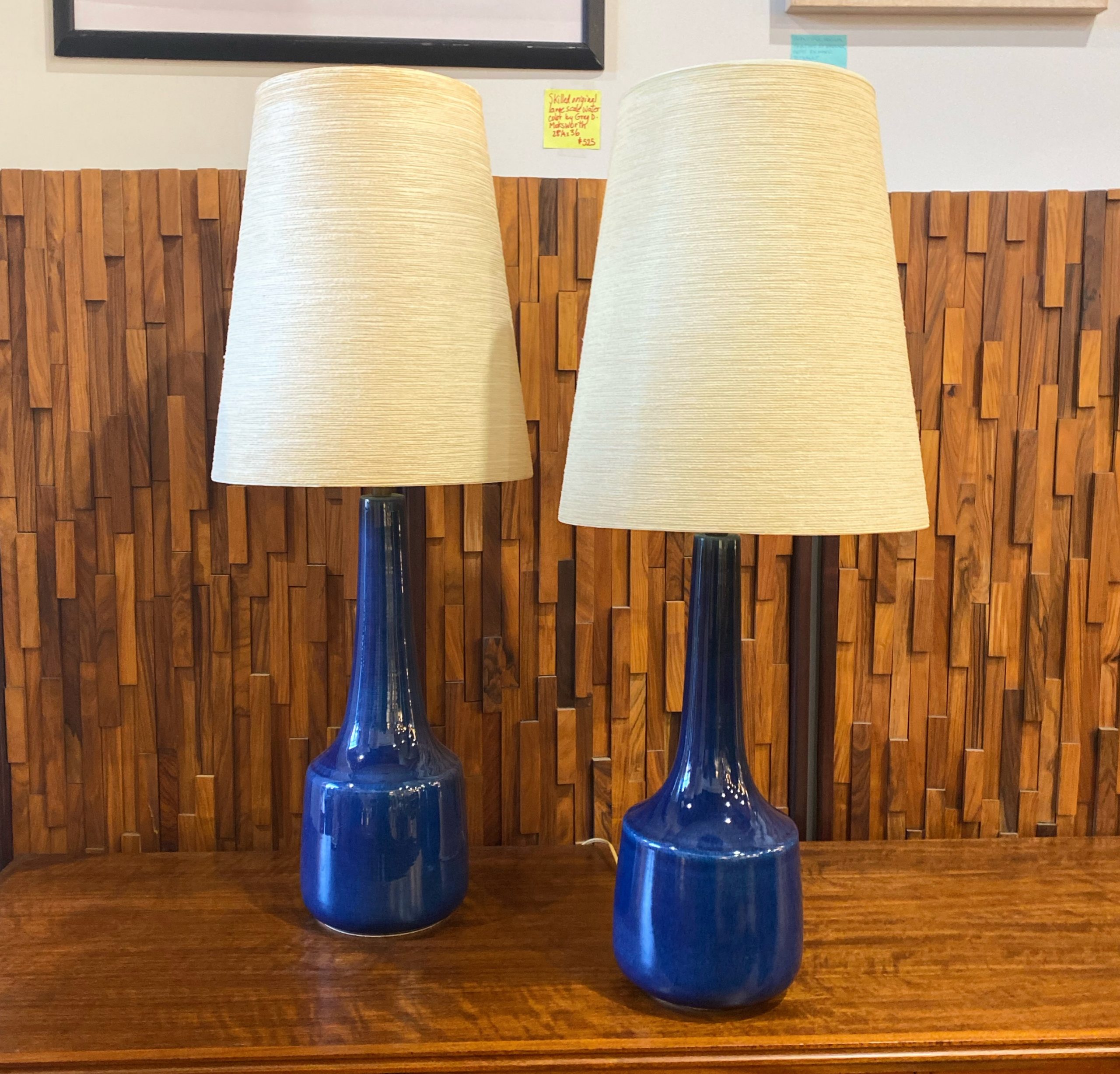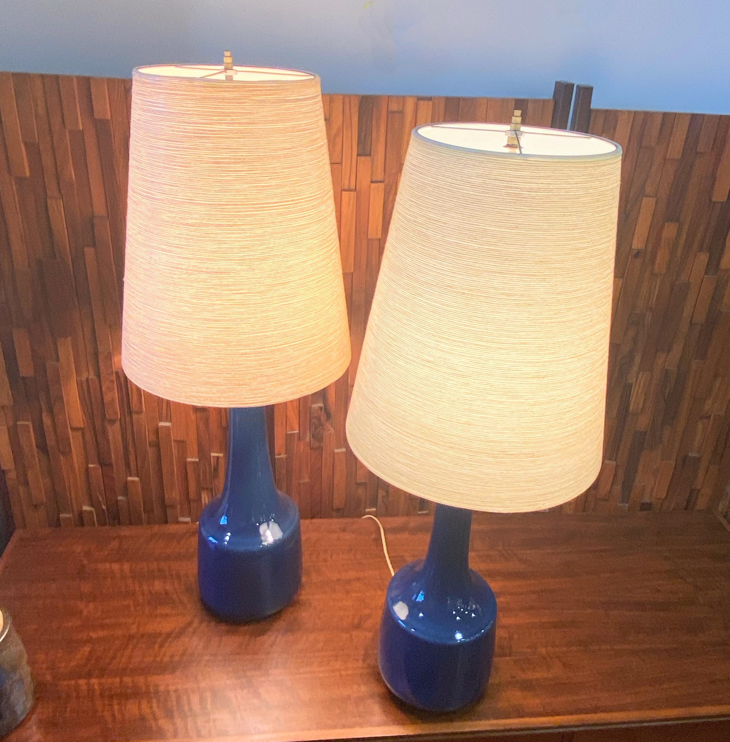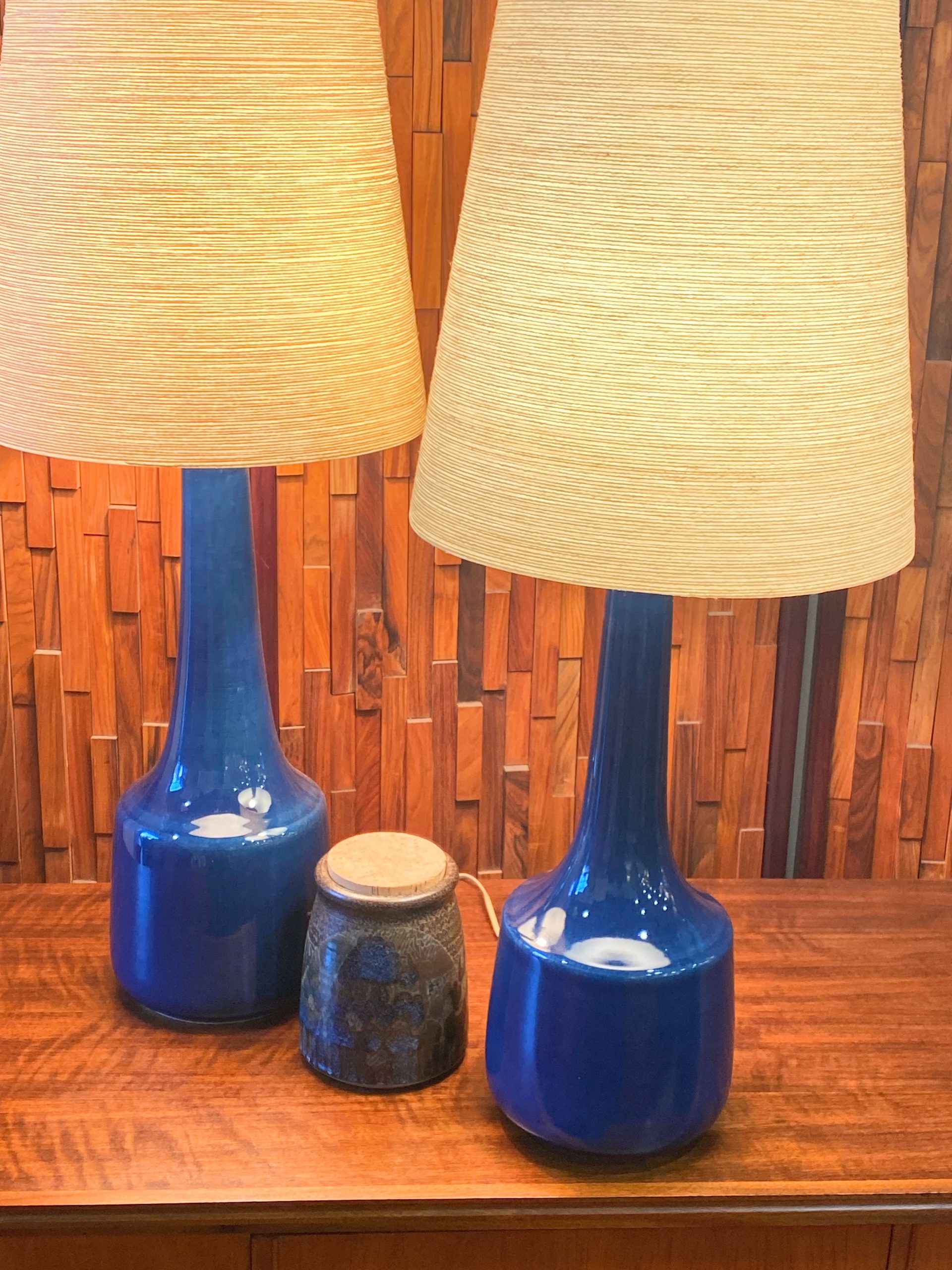 2 Cobalt Blue Lotte Bostlund Lamps w/ Orig. Fiberglass Shades