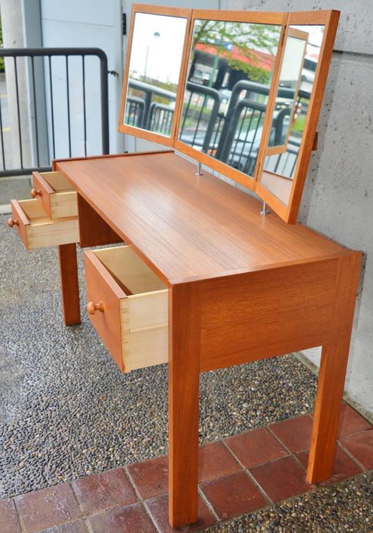 Aksel Kjersgaard Rare Teak Vanity with Tri-Fold Floating Mirror