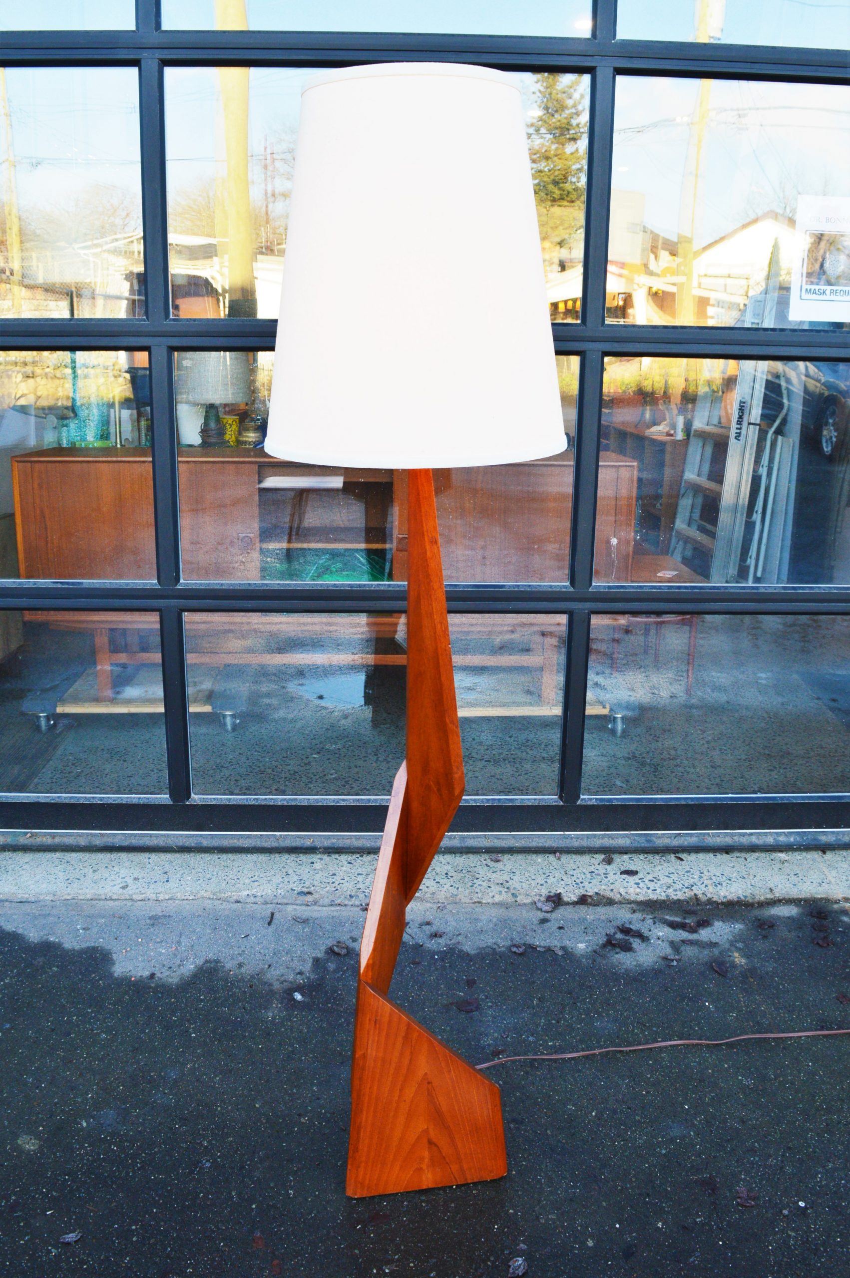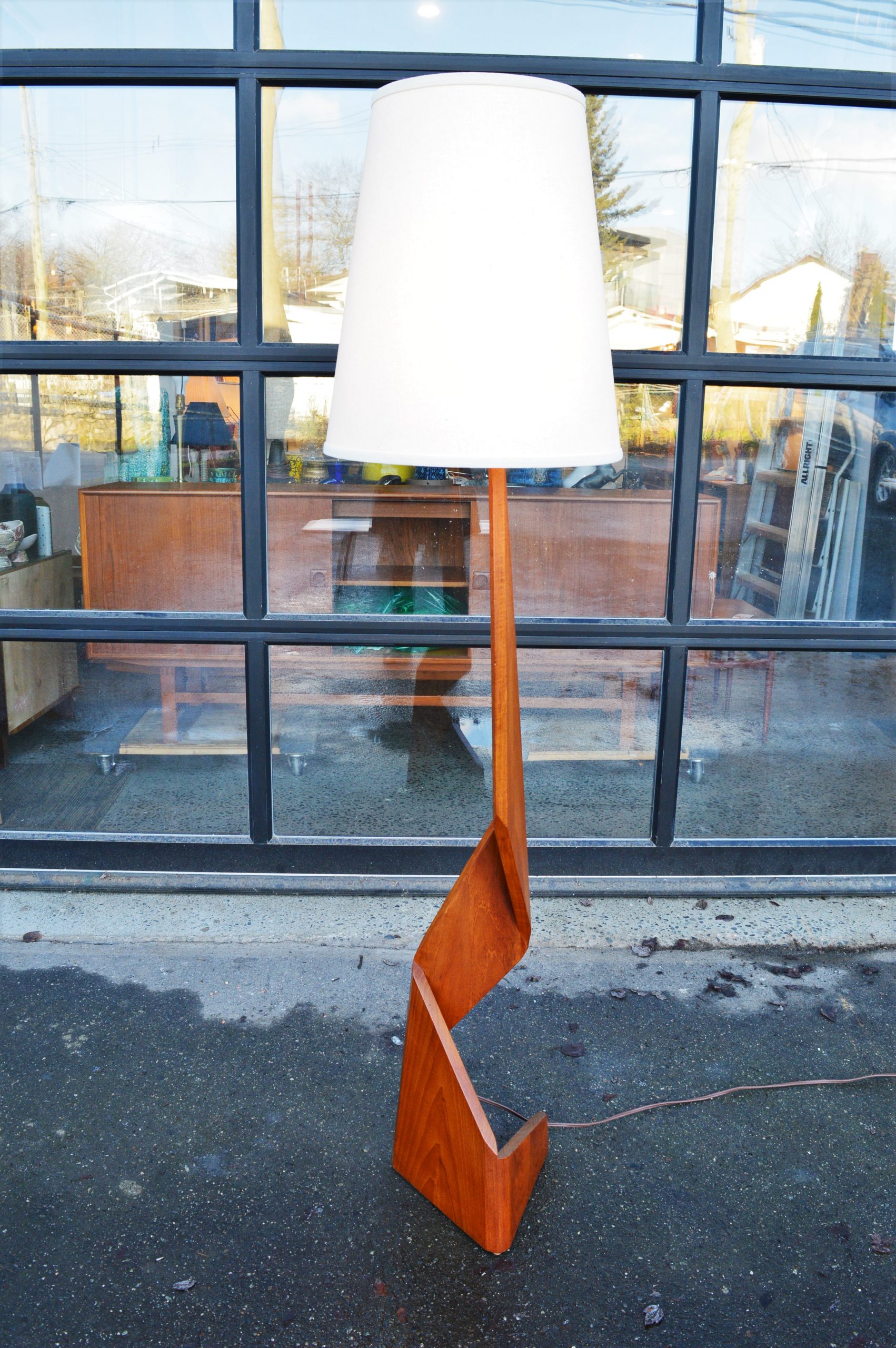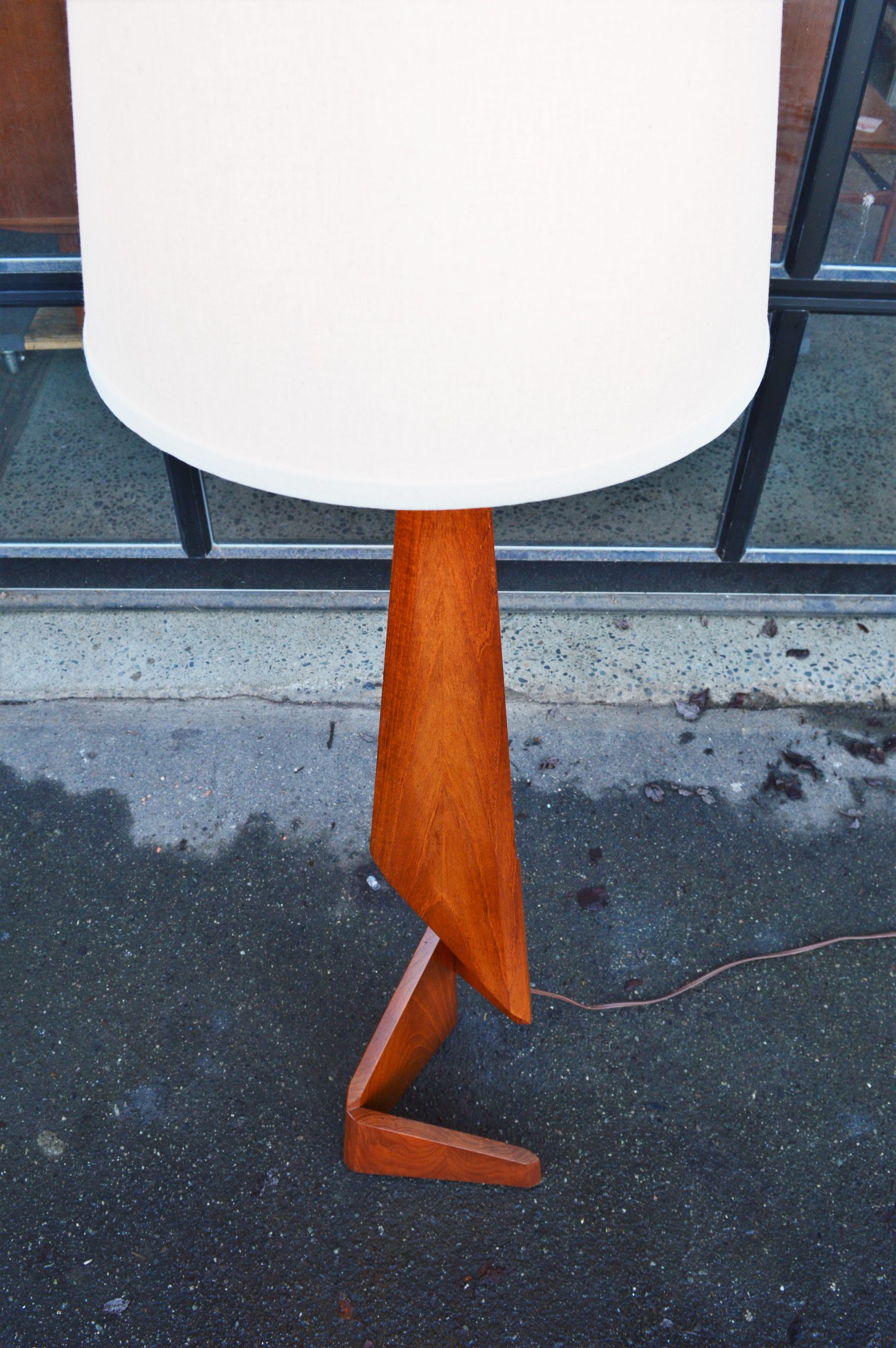 Iconic Danish Teak Architectural Zig Zag Floor Lamp w/ New Linen Conical Shade