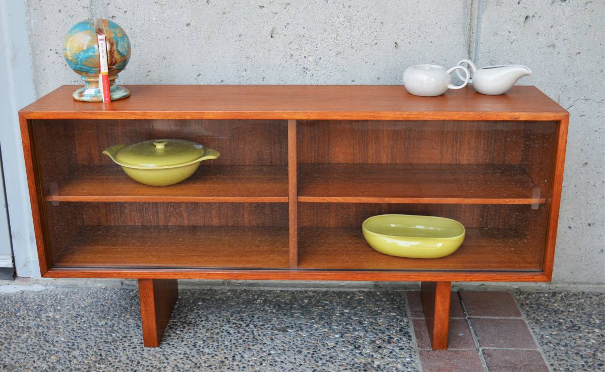 Lovely Danish Modern TEAK glass CABINET/TV STAND/BOOK CASE