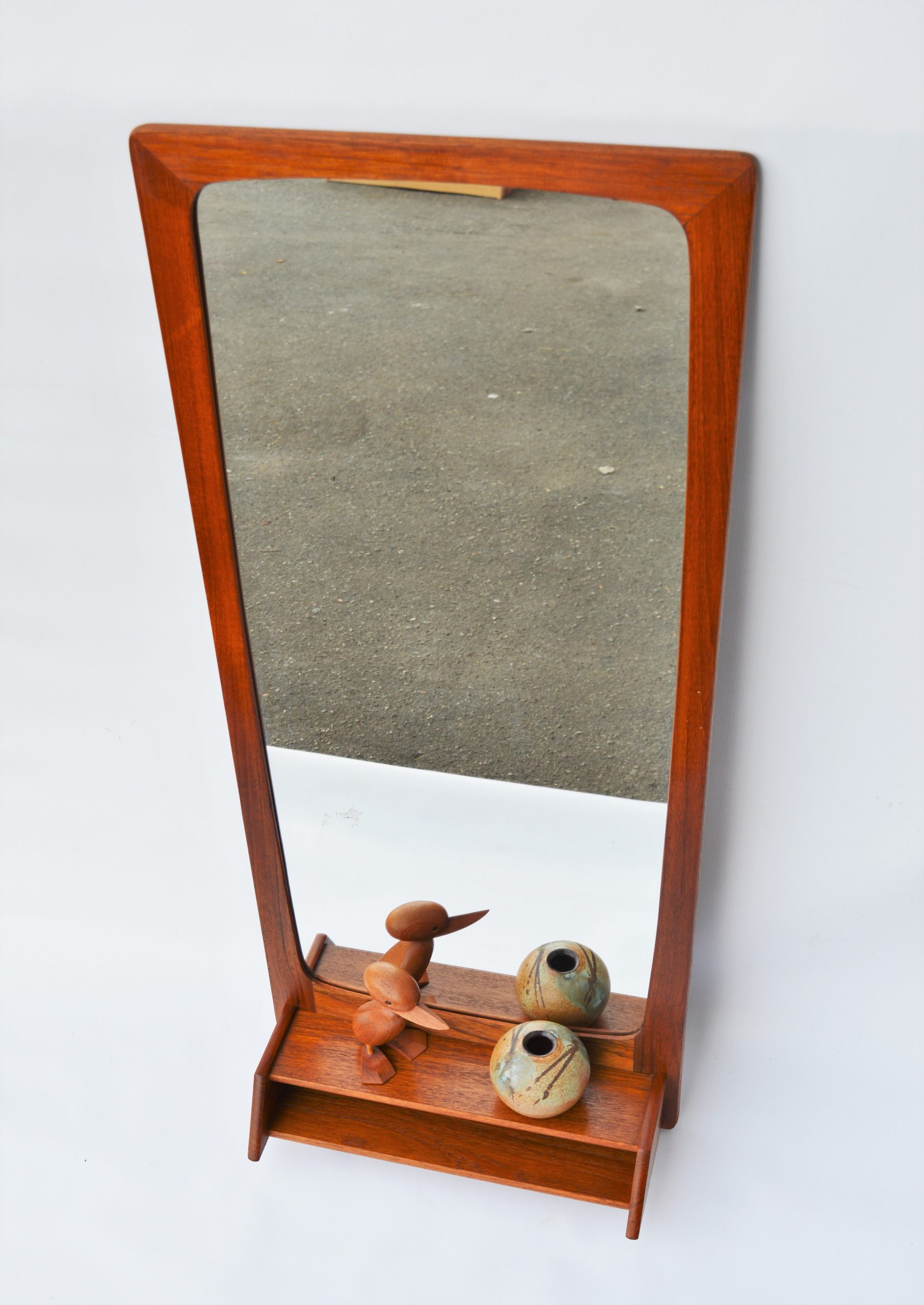 This lovely thick top round side table has a hexagonal edge trim on the top and solid teak exoskeleton legs with a trapezoidal profile.  Beautifully constructed with bolts and spacers underneath – more typical of a dining table construction than that of a side table.  Made by Mobelfabriken Toften, Denmark, in the 1960s and stamped underneath.  Legs are removable for transport.  In exceptional vintage condition.  Dimensions:  17.75 diameter x 16.75″ high.  ON HOLD