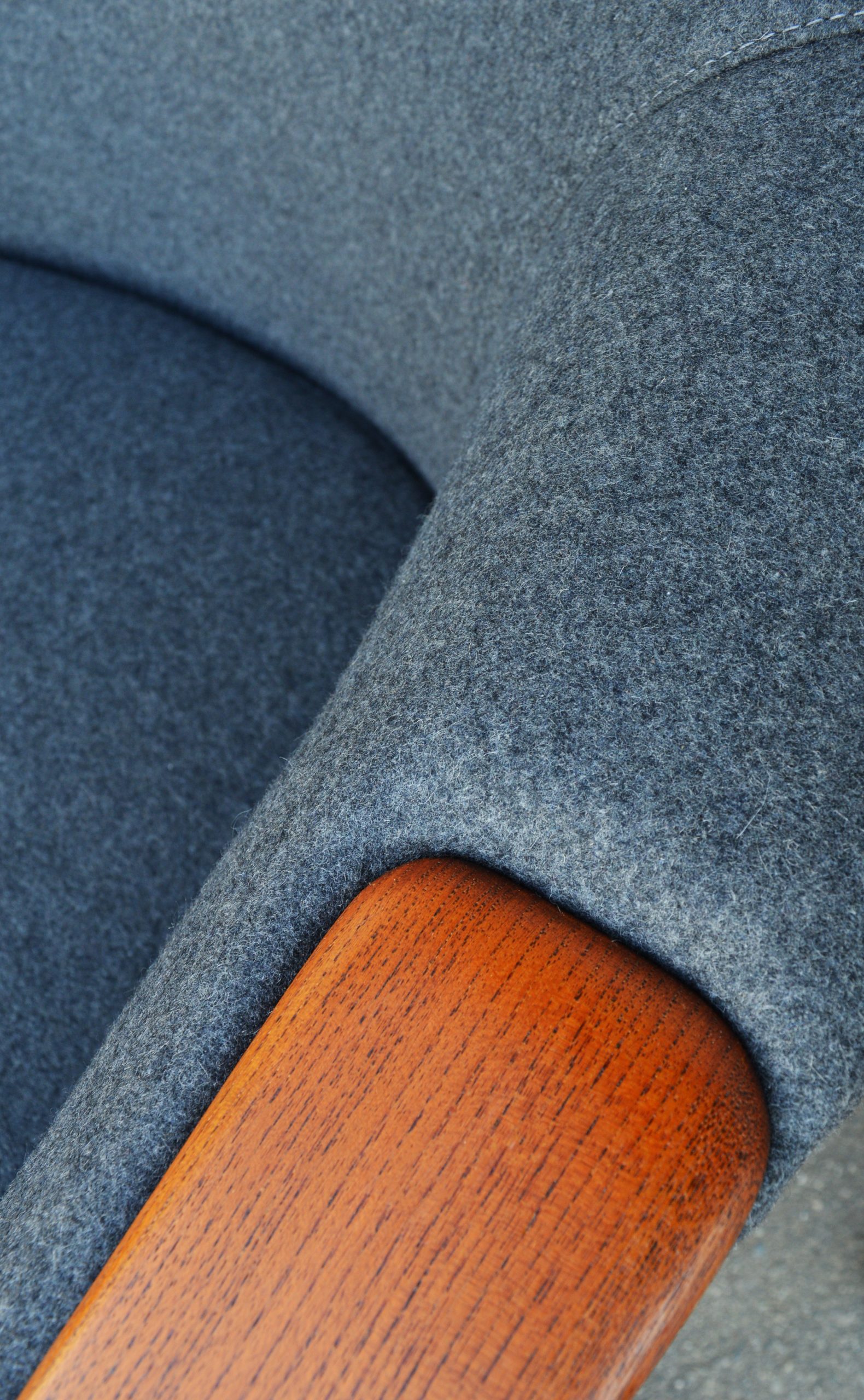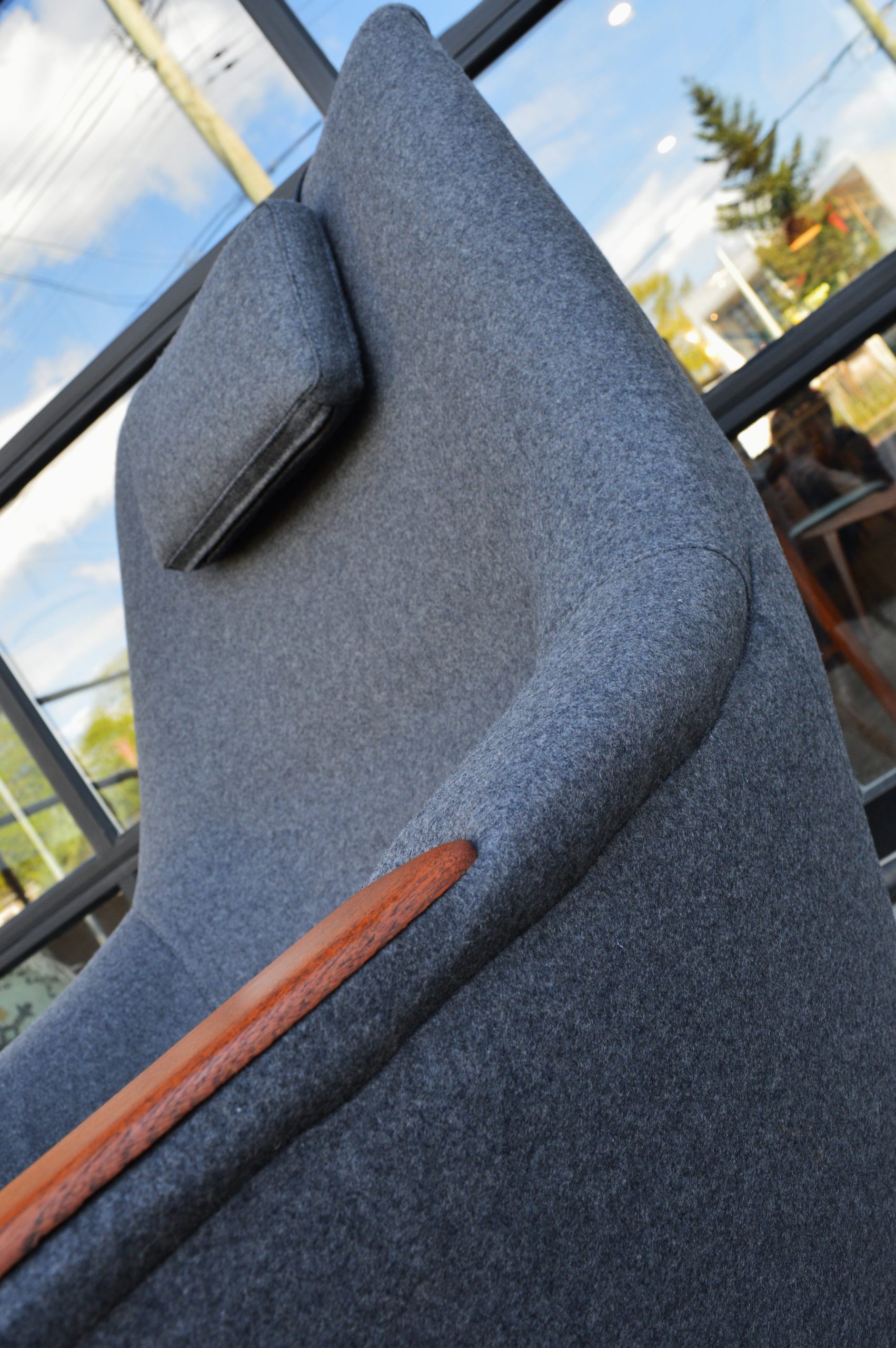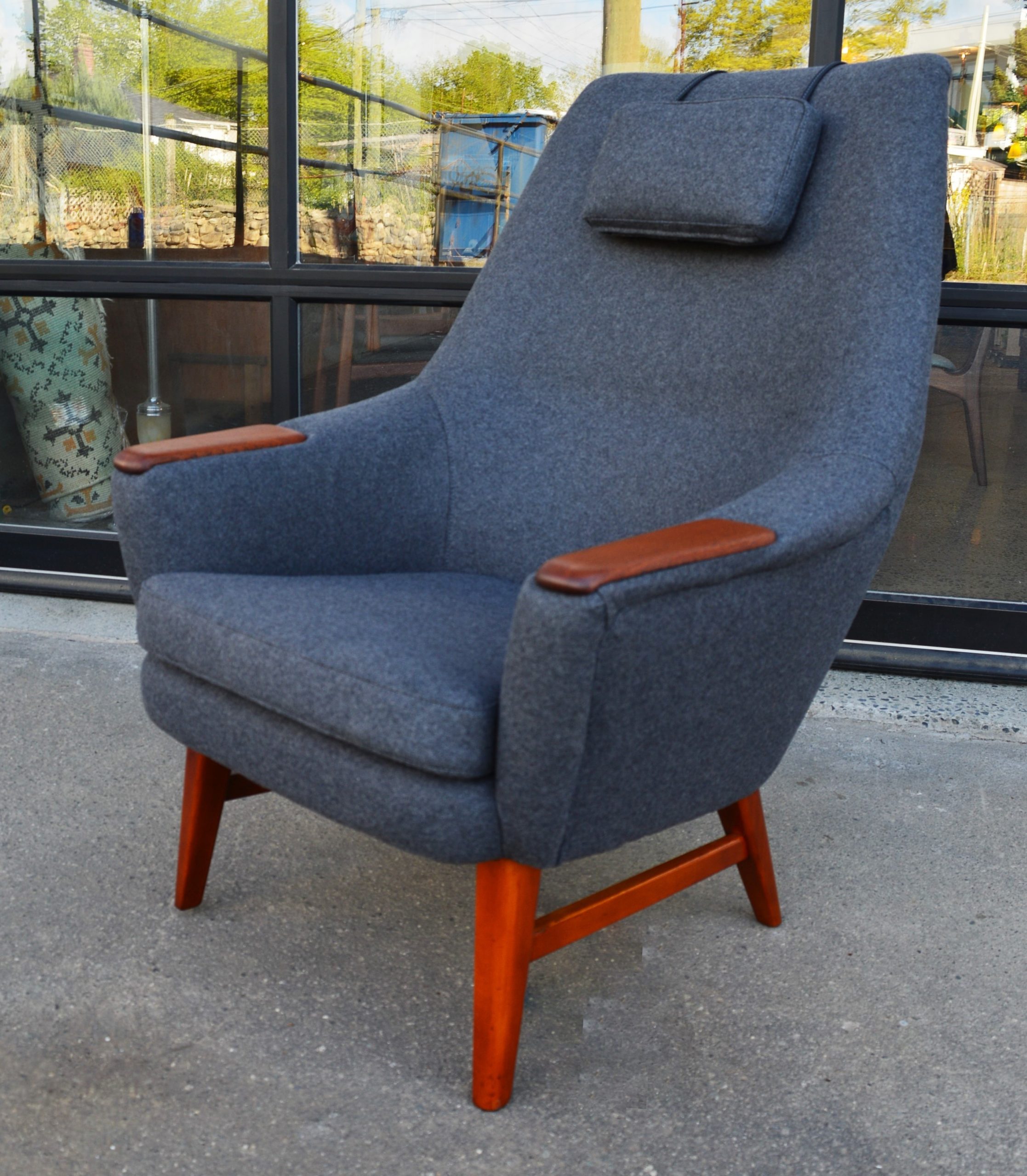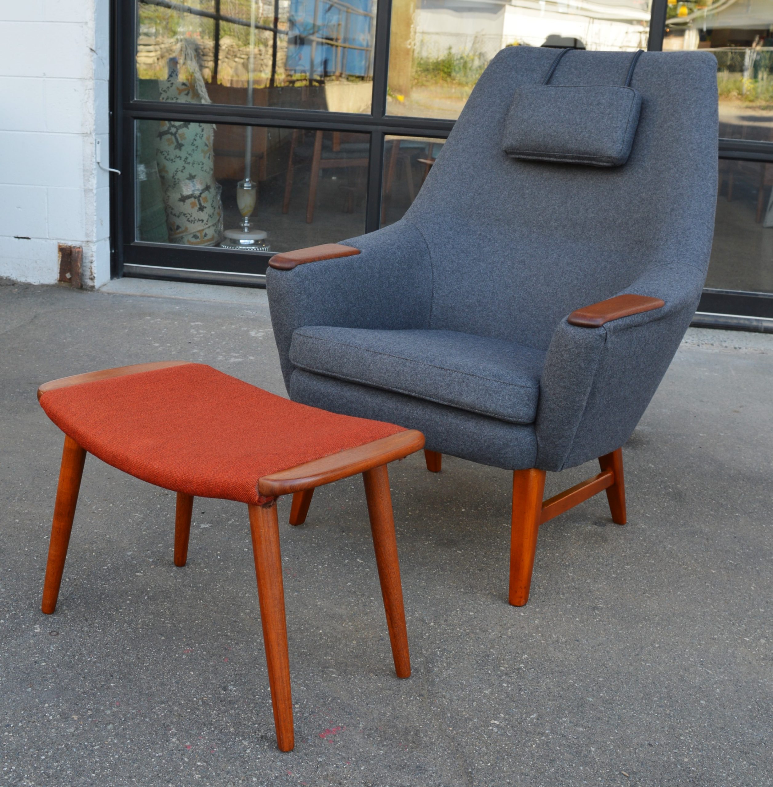 Norwegian Highback Teak Arm/Base Charcoal Wool Lounge Chair & Ottoman