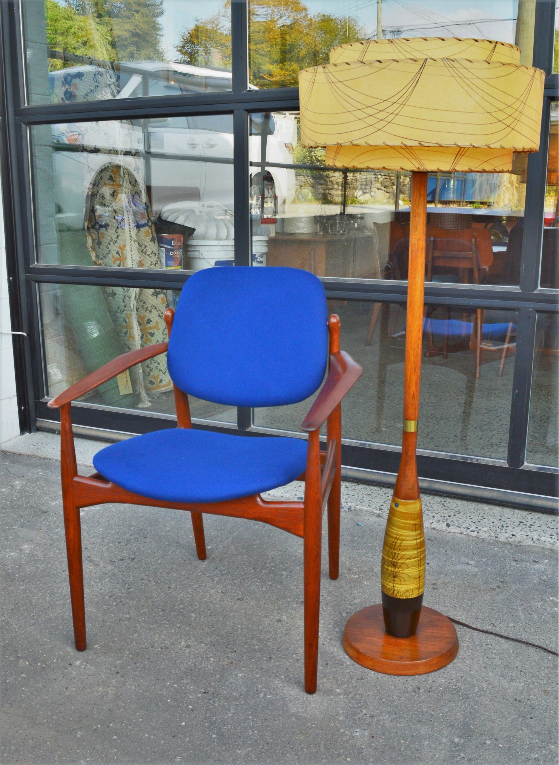 Stunning Upsala Ekeby Ceramic & Walnut Floor Lamp w/ Fiberglass Shade