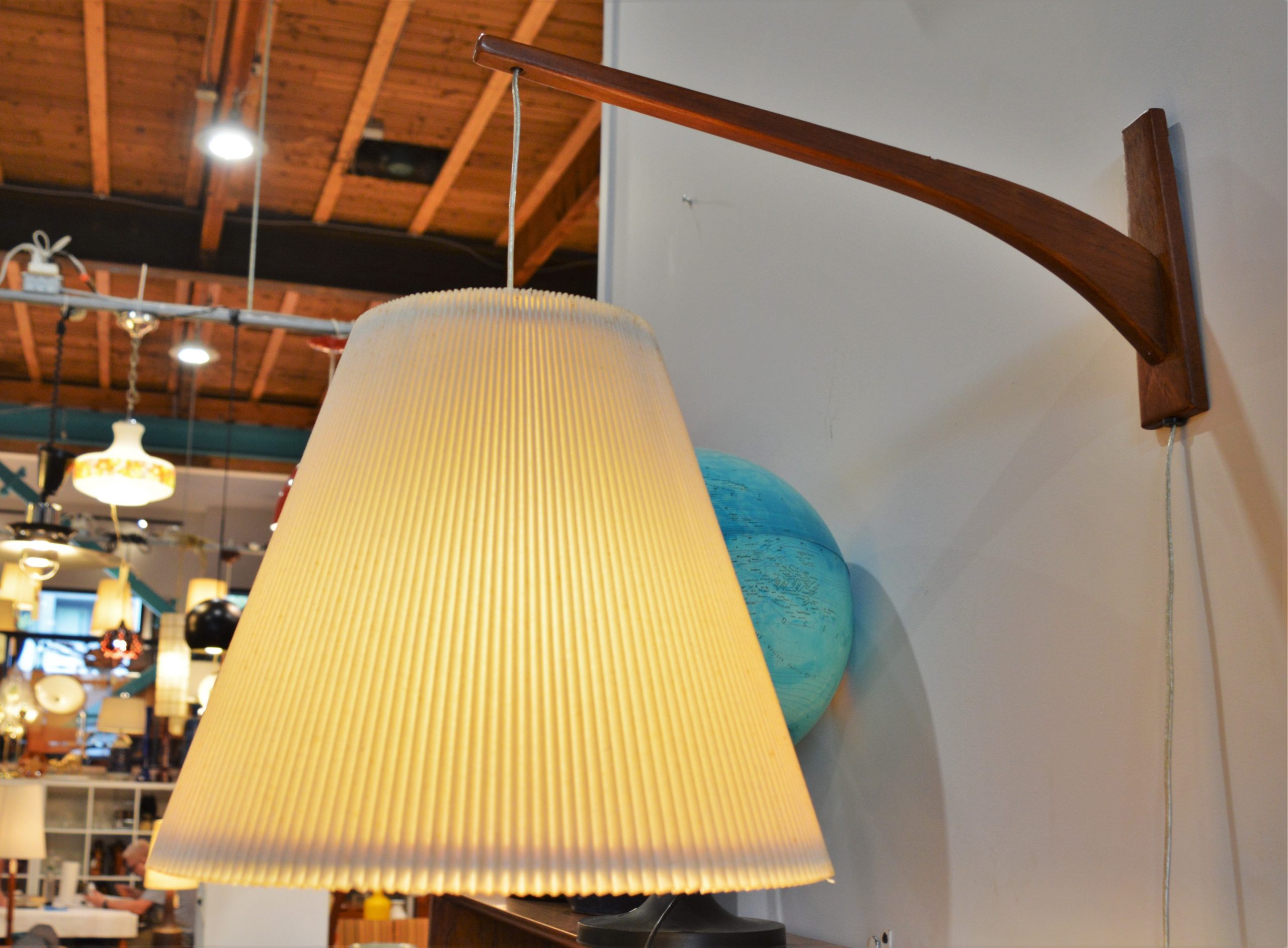 Sweet Teak Wall Lamp w/ Vintage Pleated Shade